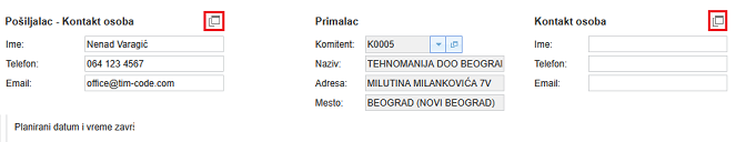 Odabir / izmena kontakt osobe kod pošiljaoca, primaoca ili vozača