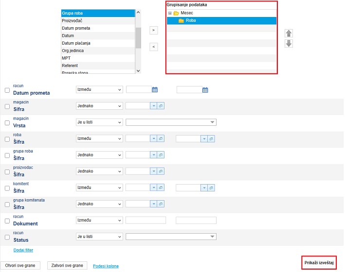 Nakon što podesite filtere kliknite na Prikaži izveštaj.
