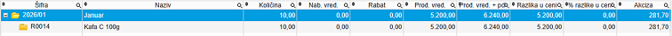 Da bi dobili izveštaj po mesecu a unutar meseca po svakoj robi koja ima akcizu podesite grupisanje podataka Mesec / Roba ili možete i drugačuje ako želite da dobijete drugi set podataka. Filterima ispod možete dodatno suziti selekciju tako što ćete pustiti izveštaj samo za određeni period, magacin, grupu roba...